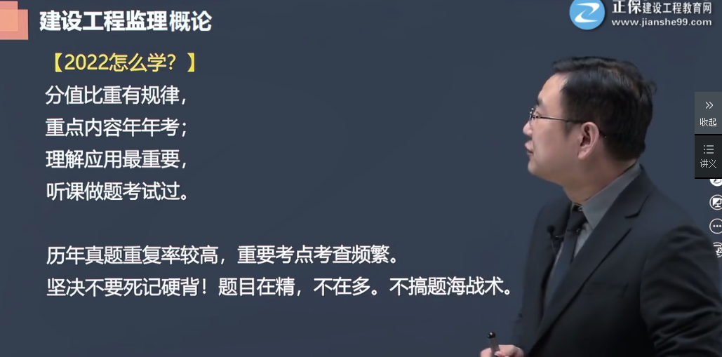 此外視頻開(kāi)端,老師簡(jiǎn)單的介紹了一下2021年監(jiān)理考試的特點(diǎn),同時(shí)進(jìn)行了簡(jiǎn)單的總結(jié)具體老師是怎樣分析的小編不多贅述,立即聽(tīng)老師說(shuō)>>
