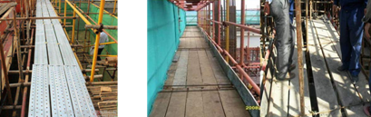 腳手板應(yīng)滿足強(qiáng)度、耐久性和重復(fù)使用要求,鋼腳手板材質(zhì)應(yīng)符合現(xiàn)行國(guó)家標(biāo)準(zhǔn)《碳素結(jié)構(gòu)鋼》(GB/T700)中Q235級(jí)鋼的規(guī)定;