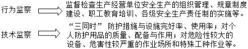 “三同時”防護措施與設(shè)施完好率、使用率;對個人防護用品的質(zhì)量、配備與作用;對危險性較大的設(shè)備、危害性較嚴重的作業(yè)場所和特殊工種作業(yè)等。
