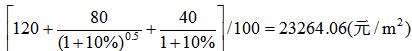 某可比實例的成交價格為24000元/m2,建筑面積100m2,首期付款120萬元,其余半年后支付80萬元,1年后支付40萬元。已知年利率為10%,則該可比實例在成交日期一次性付清的價格為( )元/m2。