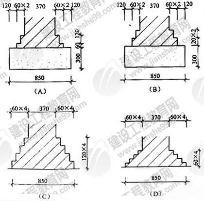 75.磚基礎(chǔ)要設(shè)大放腳,如果工程荷載和地基條件相同,試問下列哪種基礎(chǔ)構(gòu)造既安全又經(jīng)濟(jì)?