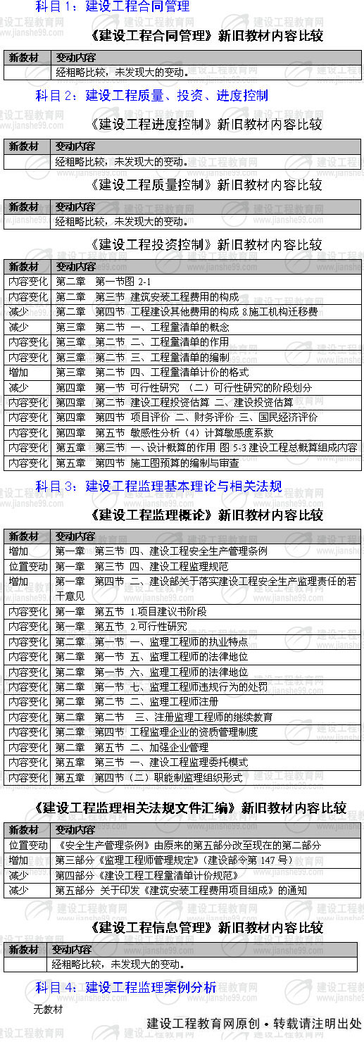 2007年監(jiān)理工程師教材新舊對比表