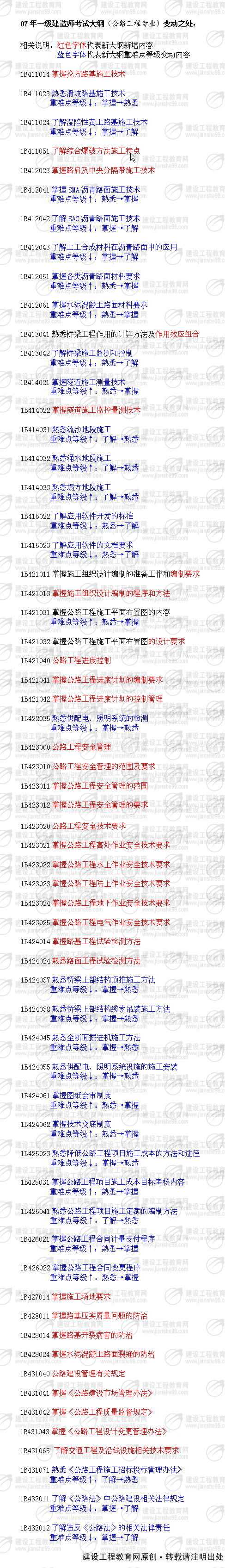 06、07《專業(yè)工程管理與實(shí)務(wù)(公路)》大綱對(duì)比