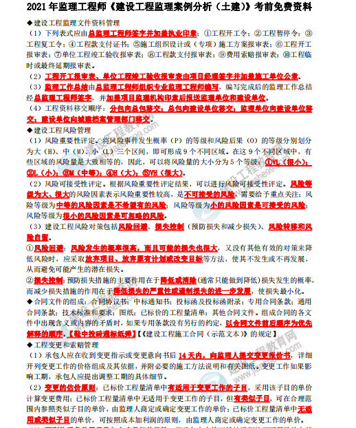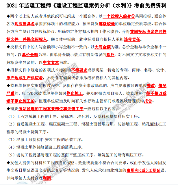 2021年監(jiān)理工程師水利案例考前三頁紙