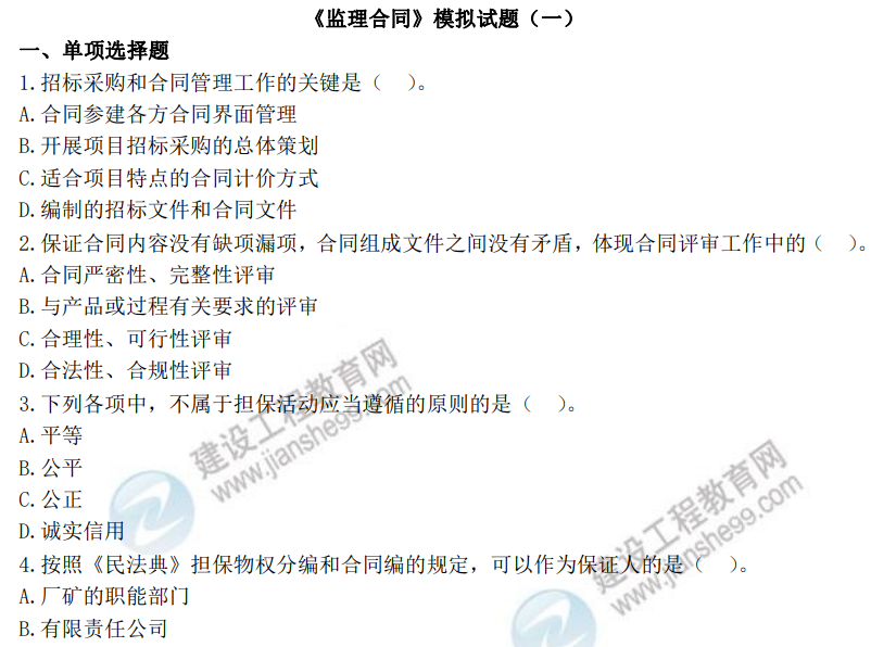 - · 2022監(jiān)理工程師《合同管理》試題及答案解析