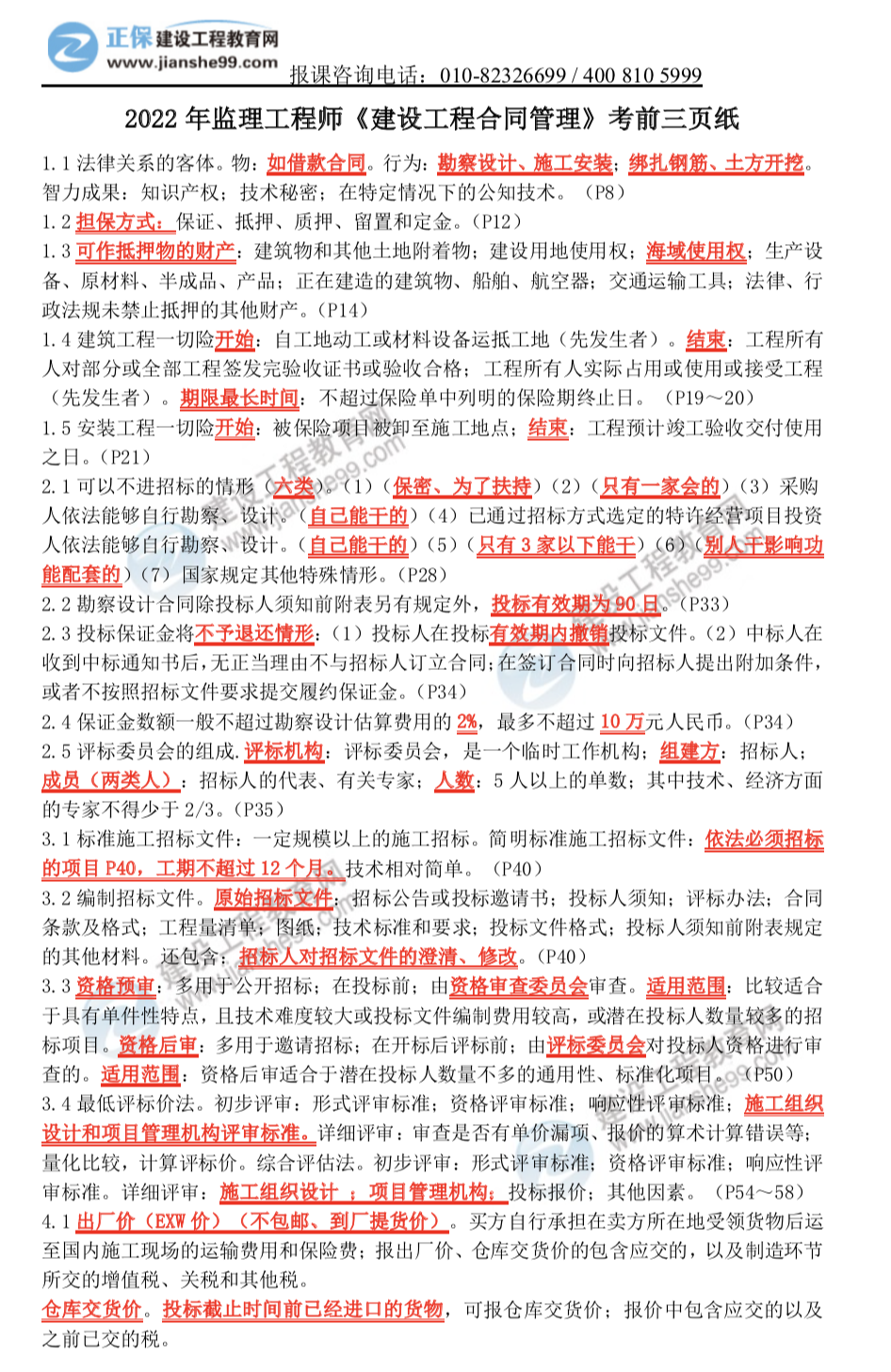 建設工程教育網(wǎng)的老師們精心整理了2022年監(jiān)理工程師考前三頁紙發(fā)給大家,趕快來領取吧~