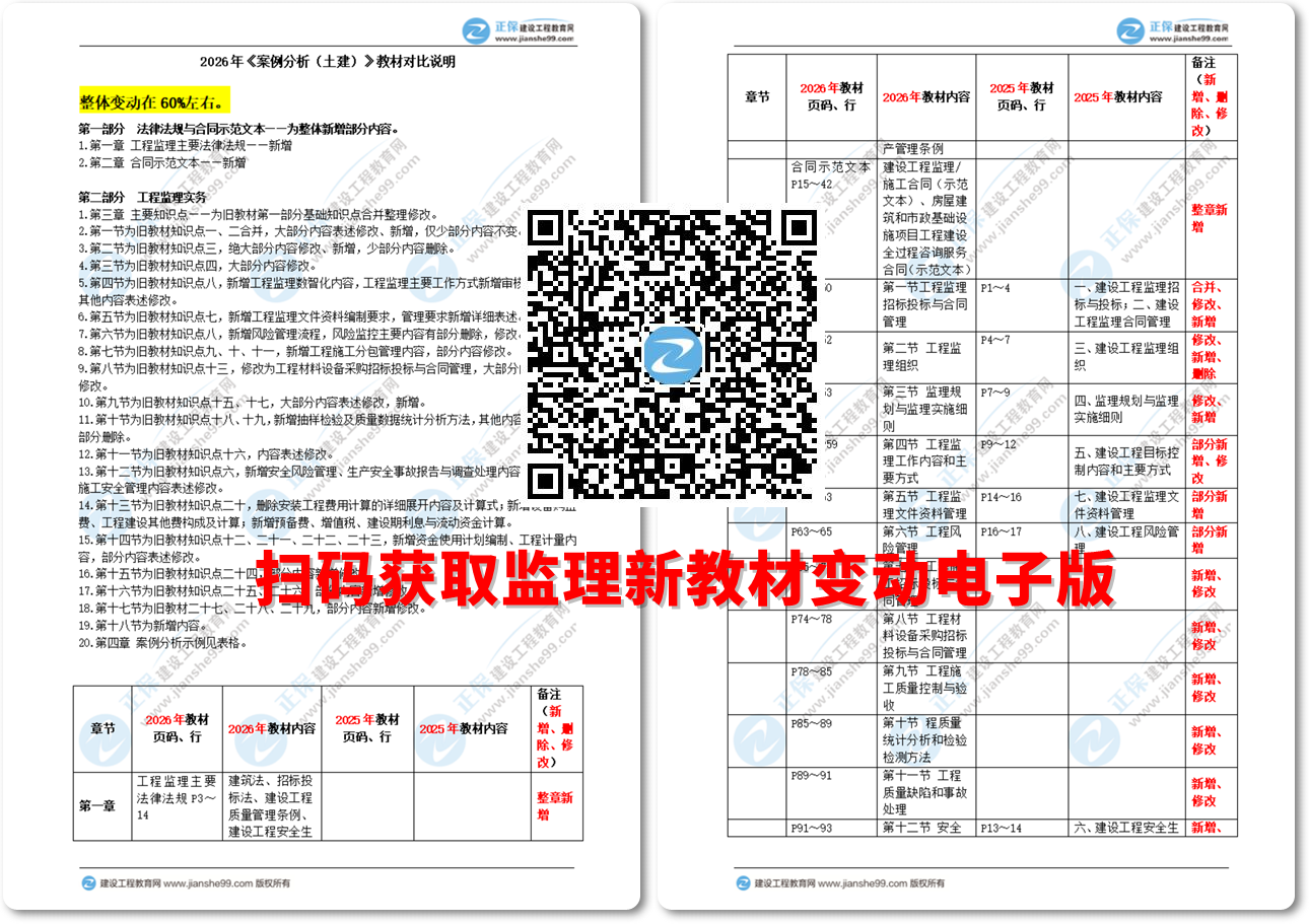 2026年監(jiān)理工程師考試官方教材正式發(fā)布,建設(shè)工程教育網(wǎng)老師為大家梳理2026年《土建案例》教材變動(dòng)詳細(xì)內(nèi)容。具體如下: