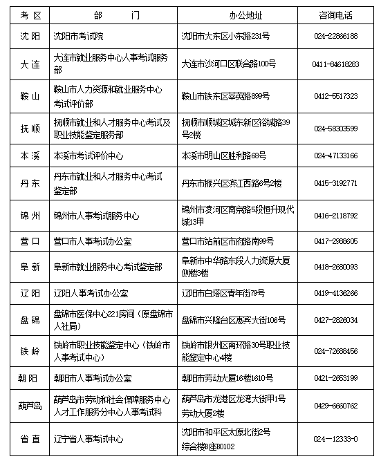 全省人事考試部門聯(lián)系方式