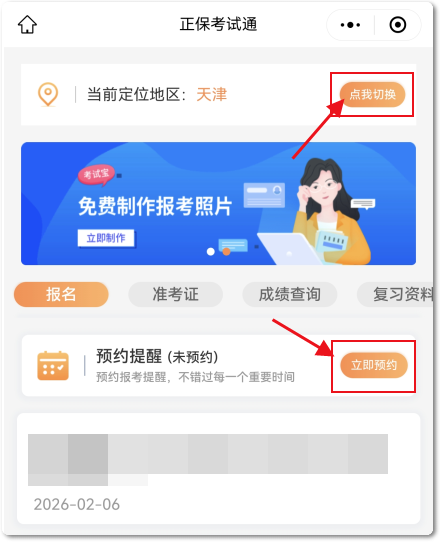 2.點擊“點我切換”選擇自己所在省市、點擊“立即預(yù)約”即可成功訂閱。