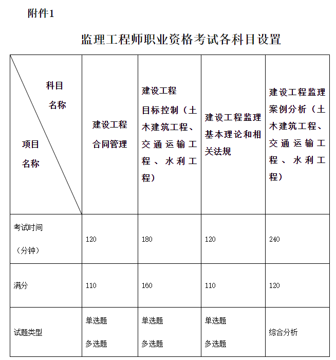 1.監(jiān)理工程師職業(yè)資格考試各科目設(shè)置