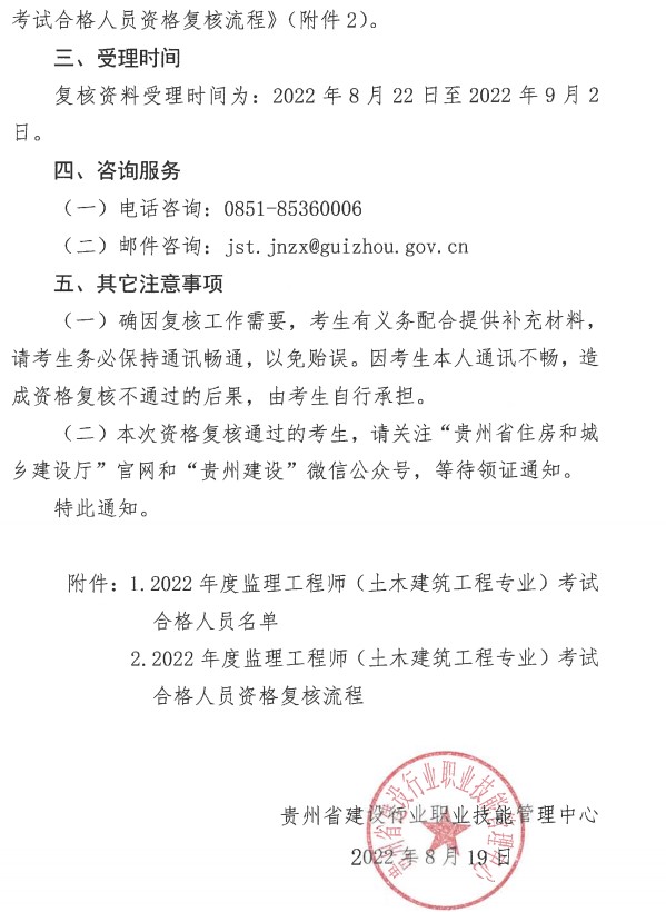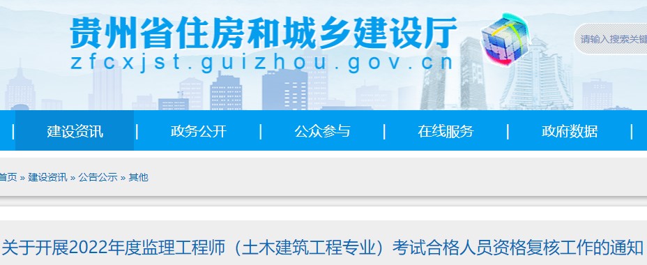 貴州關(guān)于開展2022年度監(jiān)理工程師考試合格人員資格復(fù)核工作的通知