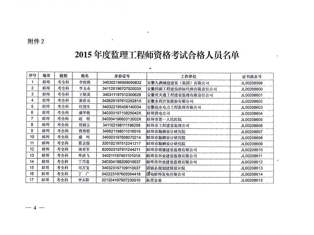 蚌埠市2015年監(jiān)理工程師考試合格人員辦理證書(shū)的通知