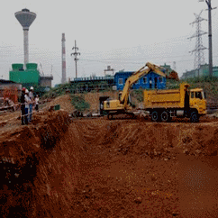 分層、分區(qū)段進行,分層高度和放坡是否符合要求,墊層混凝土澆筑是否及時