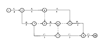 (2)用圖算法進(jìn)行時間參數(shù)計(jì)算,并標(biāo)出關(guān)鍵線路;
