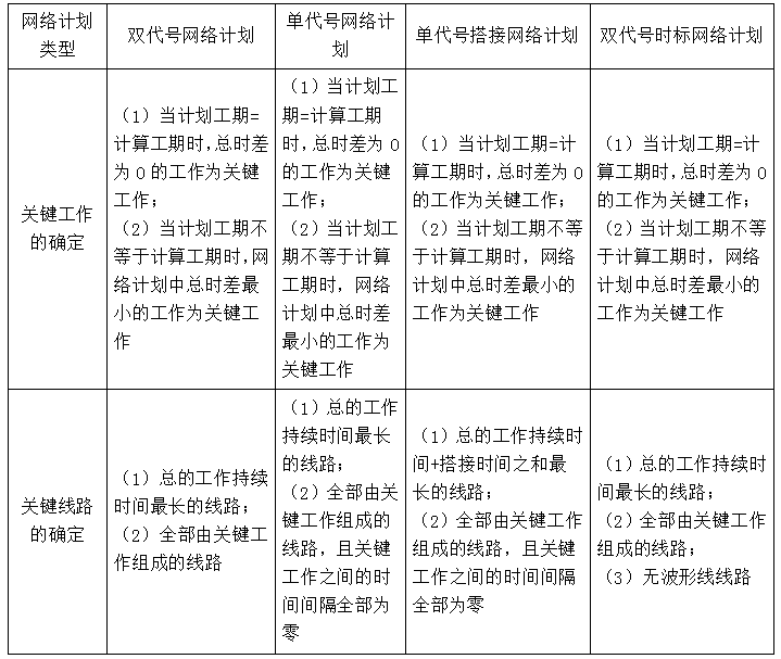 關(guān)鍵工作和關(guān)鍵線路的判斷方法