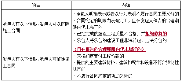 5.施工合同的解除(注意程度及表述的完整性)