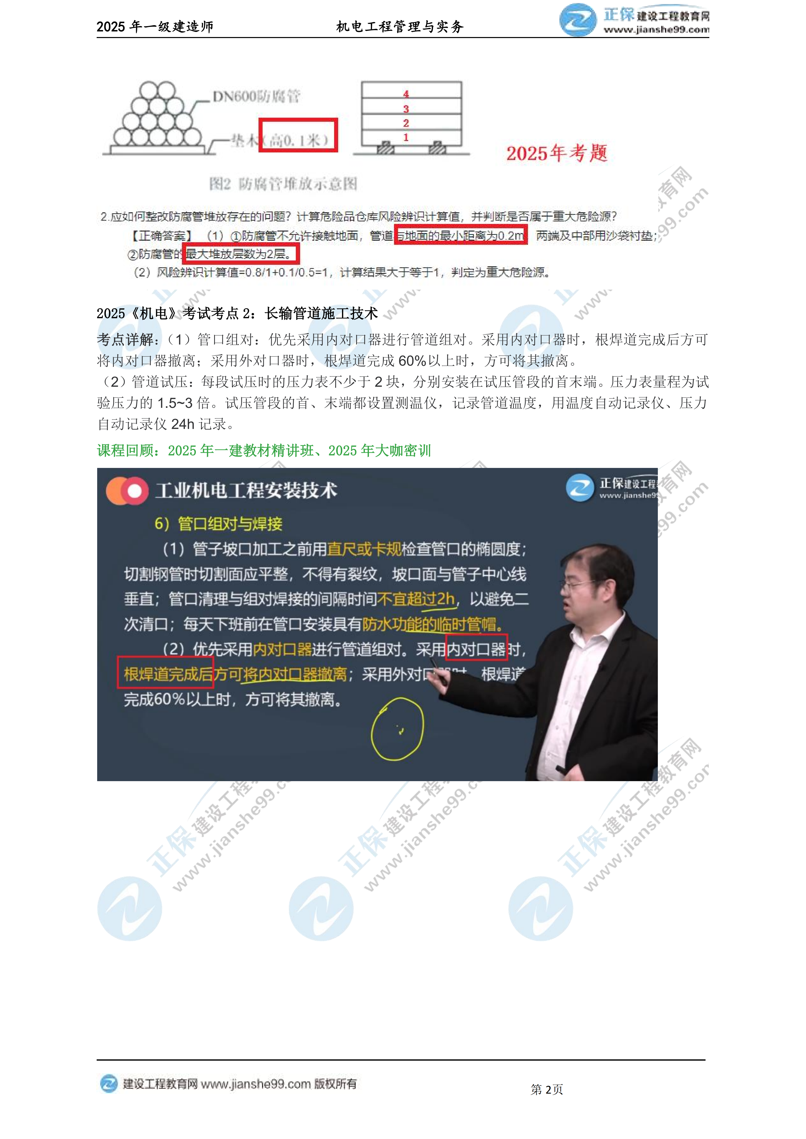 根據(jù)目前收集題目,共20單選+10多選+5案例,部分案例背景資料暫缺。共涉及知識(shí)點(diǎn)41個(gè)。今年的機(jī)電考題在2025年網(wǎng)校課程中有90%以上知識(shí)點(diǎn)在課堂中詳細(xì)講解,尤其是精講班課程、面授集訓(xùn)、大咖密訓(xùn)課程中,覆蓋真題考點(diǎn)90%。