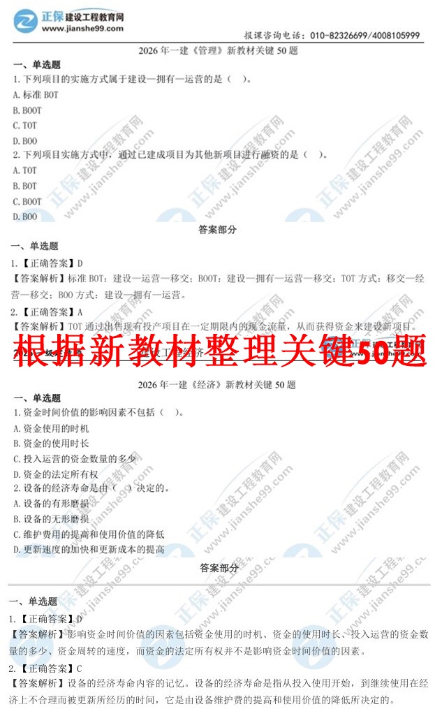 2026年一級建造師新教材已出版,學習沒有方向?不知道考試重點在哪里?建設(shè)網(wǎng)工程教育網(wǎng)為大家整理了一建新教材關(guān)鍵50題,通過答題掌握重要考點內(nèi)容,效率翻倍,快來免費領(lǐng)取吧!