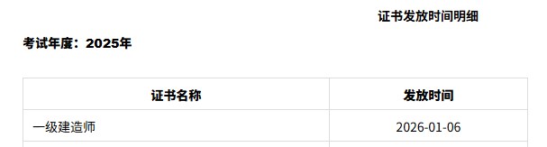 摘要:成都市人力資源和社會(huì)保障局發(fā)布成都市專業(yè)技術(shù)資格證書發(fā)放情況,2025年一級(jí)建造師證書于2026.1.6日正式發(fā)放,具體信息如下:
