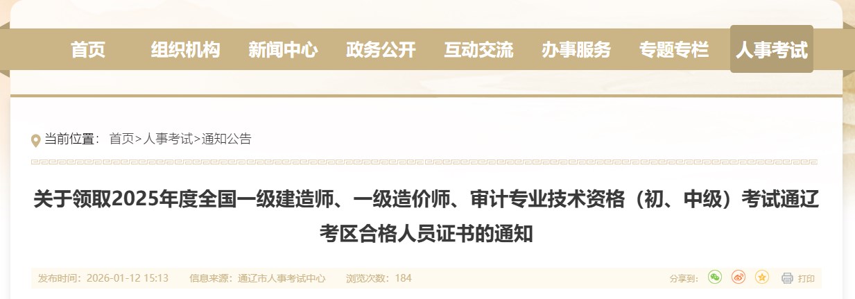 通遼市發(fā)布關(guān)于領(lǐng)取2025年度全國(guó)一級(jí)建造師合格人員證書(shū)的通知