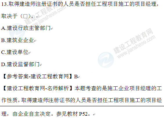 2021年一級建造師已經(jīng)陸續(xù)開始報名,考生們也在緊張的備考中。一級建造師備考除了吃透教材外,做一做歷年試題也是備考路上必不可少的一步,建設(shè)工程教育網(wǎng)為大家整理了2020年一級建造師《建設(shè)工程項目管理》的一些試題,希望對大家有所幫助!