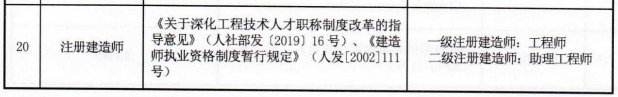 列入該目錄的注冊消防工程師、注冊核安全工程師、房地產(chǎn)估價師、造價工程師、注冊城鄉(xiāng)規(guī)劃師、注冊驗船師、注冊計量師、注冊安全工程師、執(zhí)業(yè)藥師、注冊測繪師、工程咨詢(投資)專業(yè)技術(shù)人員職業(yè)資格、計算機技術(shù)與軟件專業(yè)技術(shù)資格、資產(chǎn)評估師、土地登記代理專業(yè)人員職業(yè)資格、環(huán)境影響評價工程師、房地產(chǎn)經(jīng)紀(jì)專業(yè)人員職業(yè)資格、機動車檢測維修專業(yè)技術(shù)人員職業(yè)資格、公路水運工程試驗檢測專業(yè)技術(shù)人員職業(yè)資格、銀行業(yè)專業(yè)人員職業(yè)資格、注冊建造師、勘察設(shè)計注冊工程師、水利工程質(zhì)量檢測員資格、民用核安全設(shè)備無損檢驗人員資格、民用核設(shè)施操縱人員資格、注冊建筑師、監(jiān)理工程師等26項職業(yè)資格,直接對應(yīng)相應(yīng)系列和層級的職稱。