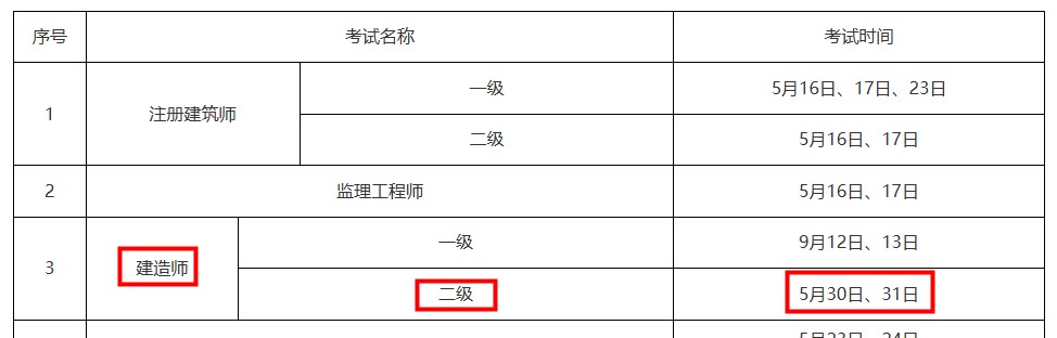 陜西省2026年二級建造師考試時間為5月30日、31日!