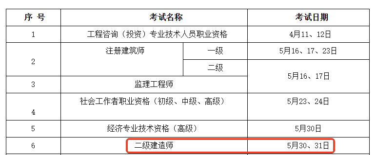 湖南人事考試網發(fā)布湖南省2026年度專業(yè)技術人員職業(yè)資格考試計劃表,其中二級建造師考試時間為:5月30、31日,具體信息如下: