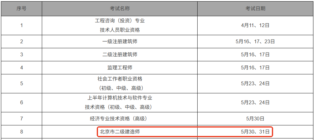 北京市人力資源和社會保障局發(fā)布北京地區(qū)2026年度二級建造師考試時間:5月30、31日,具體信息如下: