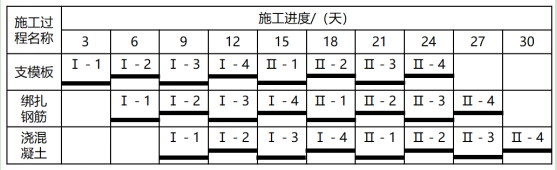 注:Ⅰ、Ⅱ表示樓層;1、2、3、4表示施工段