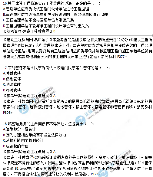 2019年二級(jí)建造師試題及答案解析-《法規(guī)》16-20題