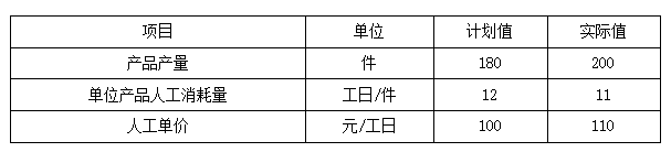 『答案解析』本題考查的是施工成本分析的方法。計劃成本目標數(shù)為:180×12×100=216000。產量替代:200×12×100=240000;消耗量替代:200 ×11×100=220000;單價替代:200×11×110=242000;單位產品人工消耗量變動對成本的影響為:220000-240000=-20000。