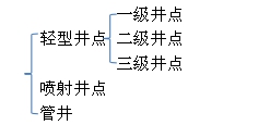 (說明:這里輕型井點的一級、二級、三級是這樣來劃分:對于開挖深度較大的基坑,分級開挖時,最上面設(shè)置的井點是一級井點,第二級設(shè)置的是二級井點,以此類推。)