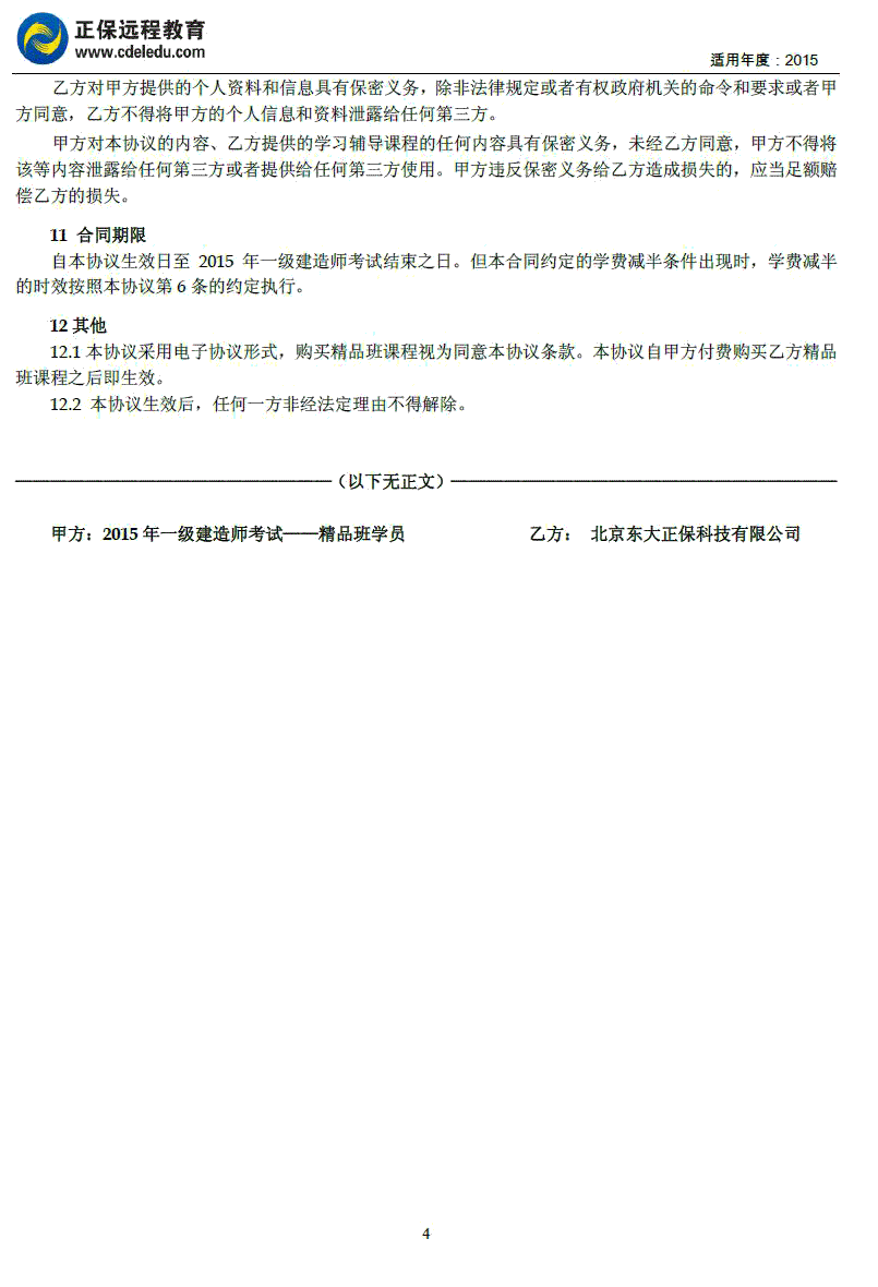一級建造師“精品班”協(xié)議書