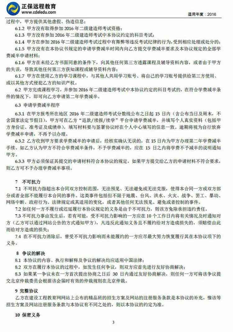 二級(jí)建造師“精品班”協(xié)議書