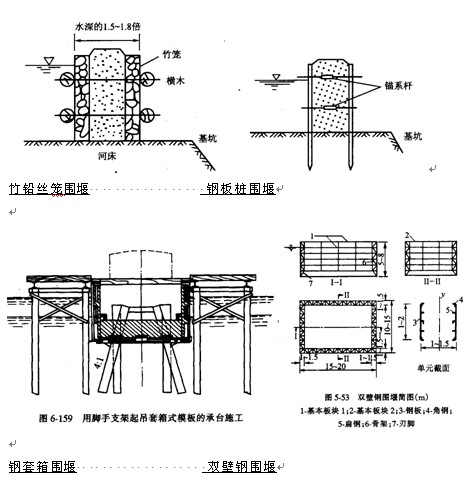 | 雙壁圍堰 | 大型河流的深水基礎(chǔ),覆蓋層較薄、平坦的巖石河床 | |