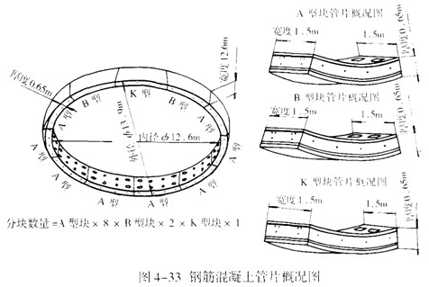 2.拼裝順序 一般從下部的標(biāo)準(zhǔn)(A型)管片開始,依次左右兩側(cè)交替安裝標(biāo)準(zhǔn)管片,然后拼裝鄰接(B型)管片,最后安裝楔形(K型)管片。