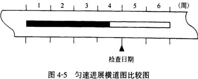 必須指出,該方法僅適用于工作從開始到結(jié)束的整個過程中,其進(jìn)展速度均為固定不變的情況。如果工作的進(jìn)展速度是變化的,則不能采用這種方法進(jìn)行實際進(jìn)度與計劃進(jìn)度的比較;否則,會得出錯誤的結(jié)論。