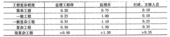 監(jiān)理工程師:0.35;監(jiān)理員1.1;行政文秘人員0.25.