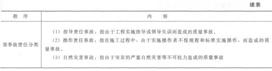 質(zhì)量不合格和質(zhì)量缺陷;質(zhì)量問題和質(zhì)量事故;特別重大事故;重大事故;較大事故;一般事故;指導(dǎo)責(zé)任事故;操作責(zé)任事故;自然災(zāi)害事故。