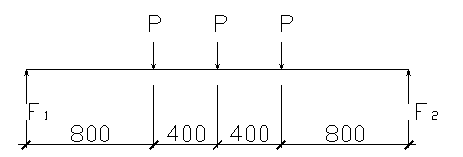 4.4.3固定框與立柱計算4.4.3.1在施工中固定框以JC-8b為例進行計算(在此例中固定框最長,承受集中荷載最多)計算模型如圖: