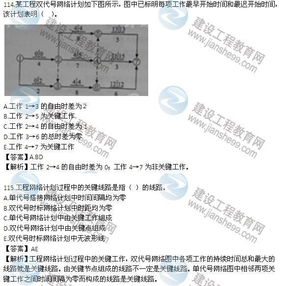 【解析】橫道圖的缺點(diǎn):不能明確地反映出各項(xiàng)工作之間錯(cuò)綜復(fù)雜的相互關(guān)系;不能明確地反映出影響工期關(guān)鍵工作和關(guān)鍵線路;不能明確反映出工作所具有的機(jī)動(dòng)時(shí)間;不能反映工程費(fèi)用與工期之間的關(guān)系。參見教材P12。