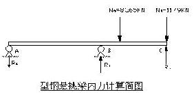 一般陽臺的檐口梁的截面較小,在采用懸挑式的型鋼布置情況下,根據(jù)懸挑梁的受力特點(diǎn)(如下圖),在檐口梁處的承受壓力較大。按24m高的懸挑架來計算,一般在檐口梁處承受一根懸挑