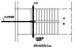型鋼懸挑梁布置時遇梯間地段時,可采取陽臺處的懸挑梁的上拉鋼絲繩方法(類似上圖所示),或采用內(nèi)置橫壓梁方法,橫壓梁擱置在梯間的兩側(cè)框架梁上,采用預(yù)埋件固定(在磚混結(jié)構(gòu)中不得磚砌體壓重壓梁)。如下圖所示。因壓梁布置在樓梯間處,因此需做好安全警示,鋪設(shè)好人員上下踏步,以保證人員上下的安全。