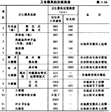 4.4衛(wèi)生潔具安裝高度如設(shè)計無要求時,應(yīng)符合表l-16的規(guī)定。