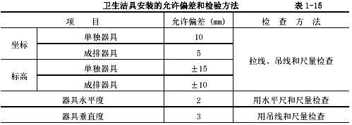 4.3衛(wèi)生潔具安裝的允許偏差和檢驗方法見表1-15。