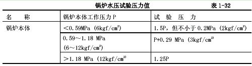 3.1.14.5鍋爐水壓試驗(yàn)的壓力規(guī)定見表1-32。