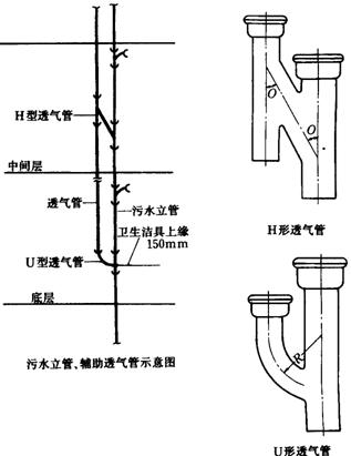 3.5.7高層建筑采用輔助透氣管,可采用輔助透氣異型管件連接(圖3.5.7)。