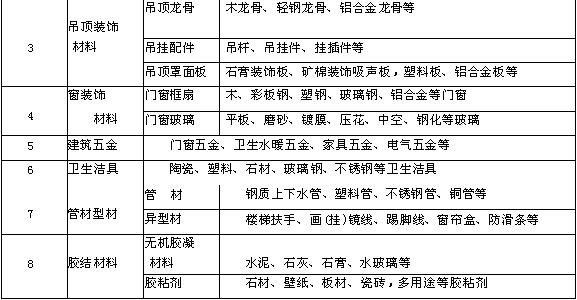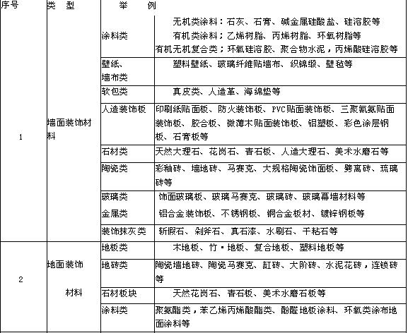 裝飾裝修材料按照裝飾部位的分類表3-4
