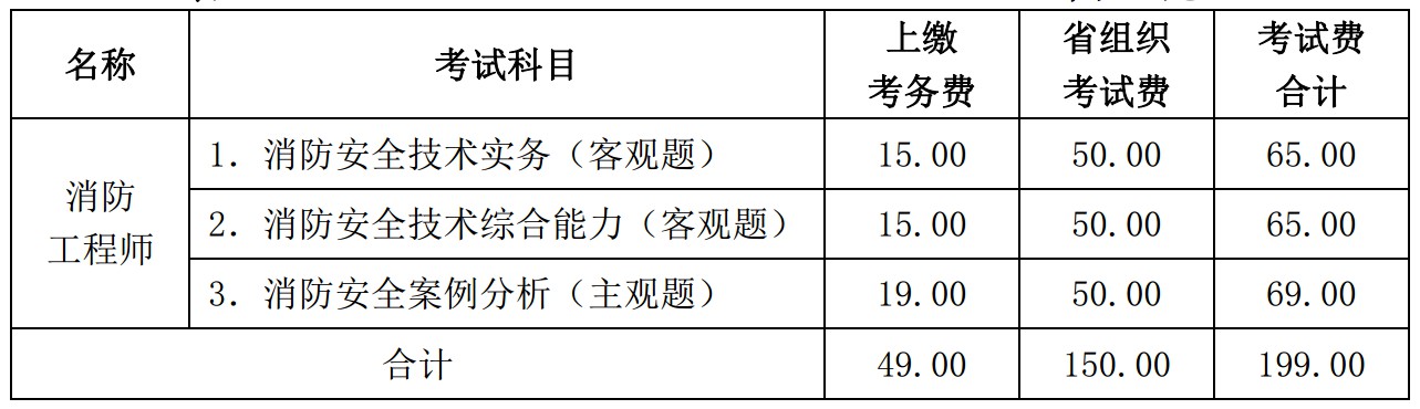 山西太原一級注冊消防工程師資格考試收費(fèi)標(biāo)準(zhǔn)(單位:元)